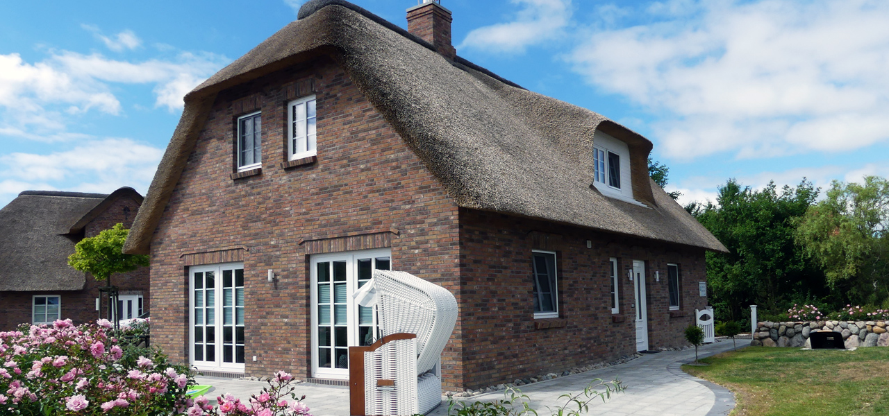 Reetgedeckte Ferienhäuser gehören an der Nordseeküste zu den exklusiven Herbergen und bilden gerade in Nordfriesland im dörflichen Verbund ein landestypisches Bild. Lange Zeit wurden die Reetdachhäuser aus Kostengründen immer seltener, jedoch setzt seit mehreren Jahren ein deutlicher Umkehrtrend ein. Der Grund hierfür ist, dass reetgedeckte Dächer extremen Wetterbedingungen wie Regen, Schnee und Sturm sehr gut standhalten können. Zudem ist Reet von Natur aus resistent gegen Feuchtigkeit, da es kein Wasser absorbiert. Wasser dringt in der Regel nicht tiefer als 3-5 cm in das Reet ein. Und daher ist Reet nicht nur ein faszinierender Baustoff, sondern ist zudem natürlich und wird nicht chemisch behandelt. Hierdurch entsteht ein einzigartiges Raumklima, so dass ein Leben unter Reet entscheidende Vorteile gegenüber der konventionellen Hausbedachung hat. Hierzu zählen neben den außerordentlichen Dämmeigenschaften (warm im Winter, kühl im Sommer), eine gute Schallisolierung, ein biologisch gesundes Wohnen, natürliche Feuchtigkeitsdiffusion und letztendlich beschert es vielen einen ungewöhnlich guten Schlaf – lassen Sie sich überraschen bei einem Urlaub an der Nordsee.